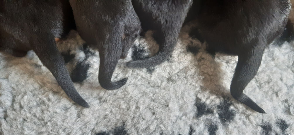 Eine spannende erste Woche geht zu Ende und die Babys entwickeln sich prächtig. Frau Dr. Brigitte Fiedler war am zweiten Tag da und hat Felias Nachwuchs untersucht: Alles gesund soweit! Auch die Nabelschnur ist bei allen Welpen bereits am dritten Tag abgefallen.