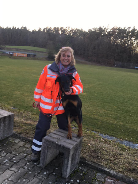 Bereits seit 2008 engagiere ich mich beim Bayerischen Roten Kreuz (BRK) und bin als Hundeführerin tätig. Begonnen habe ich dieses Ehrenamt mit meiner Finni, die in der Flächensuche ausgebildet war. Felia wurde bereits seit Welpenalter zum Mantrailer ausgebildet. Ihre Tochter Annabel startete auch in einem sehr jungen Alter, mit 8 Wochen, eine Ausbildung zum Flächensuchhund.